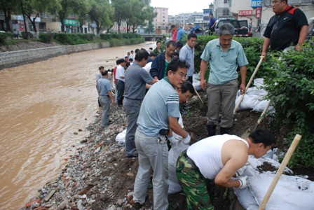 8月4日至5日,白山市广大农机战线干部职工积极响应市委、市政府抗洪抢险的工作部署,按照“防大汛、抗大洪、抢大险、救大灾”的要求,全力投入抗洪抢险工作中。组织干部职工60多人,出动挖掘机一台,防洪车2辆,在市农委包保的金坑河内进行淤泥清理,对河堤进行加固。共清理河道淤泥450立方米。填装防洪沙袋2100多袋,河堤险段加高堤坝1米。并对河堤24小时巡查,死看死守,未雨绸缪,防患未然。