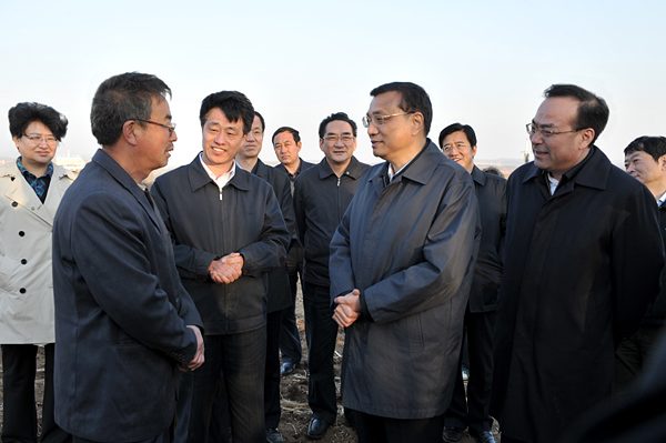 当前,正值备春耕生产的关键时期。李克强来到九台市东湖镇放牛沟村,实地考察春季深松整地进展。在深松整地起垄现场,一些农用机械正在作业。李克强走进田间,蹲下身去,扒开表土,察看土壤墒情。他又来到农用机械旁边,询问不同类型机械的功能和性能、市场价格和农机补贴额度、柴油价格上涨对农业生产的影响等情况,并饶有兴致地观看了机械作业演示。他鼓励九台市,要争做农业大县、财政强县,促进农业再获丰收,为确保国家粮食安全作出更大贡献。李克强还来到九台经济开发区的吉林省兴良储备粮库,察看粮食收储情况。看到玉米仓储状况良好,他肯定地说,粮库的管理水平很高!李克强对粮库负责同志说,储备粮是国家重要的战略物资,对于保障供给、平抑价格等具有重要作用。要坚持科学管理,确保数量准确、质量良好,让储备粮储得进、调得动、用得上。