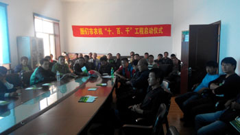 9月19日在图们市凉水镇召开了图们市农机双“十、百、千”工程启动仪式。参加启动仪式的有州农机局副局长尹星、专业农场、合作组织、种粮大户代表及有机大户40余人,超额完成年初州局制定的30人计划任务。培训两项内容:玉米栽培技术和联合收割机维修保养。