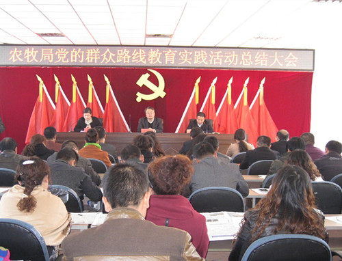 会上,党委主要负责人就群众路线教育实践活动开展情况向大会作了总结报告。县委督导组组长对农牧局党的群众路线教育实践活动给予高度评价。党的群众路线教育实践活动虽已告一段落,但大家仍需以优良的工作作风,善做善行的态度,努力做好各项工作,去巩固扩大活动成果。